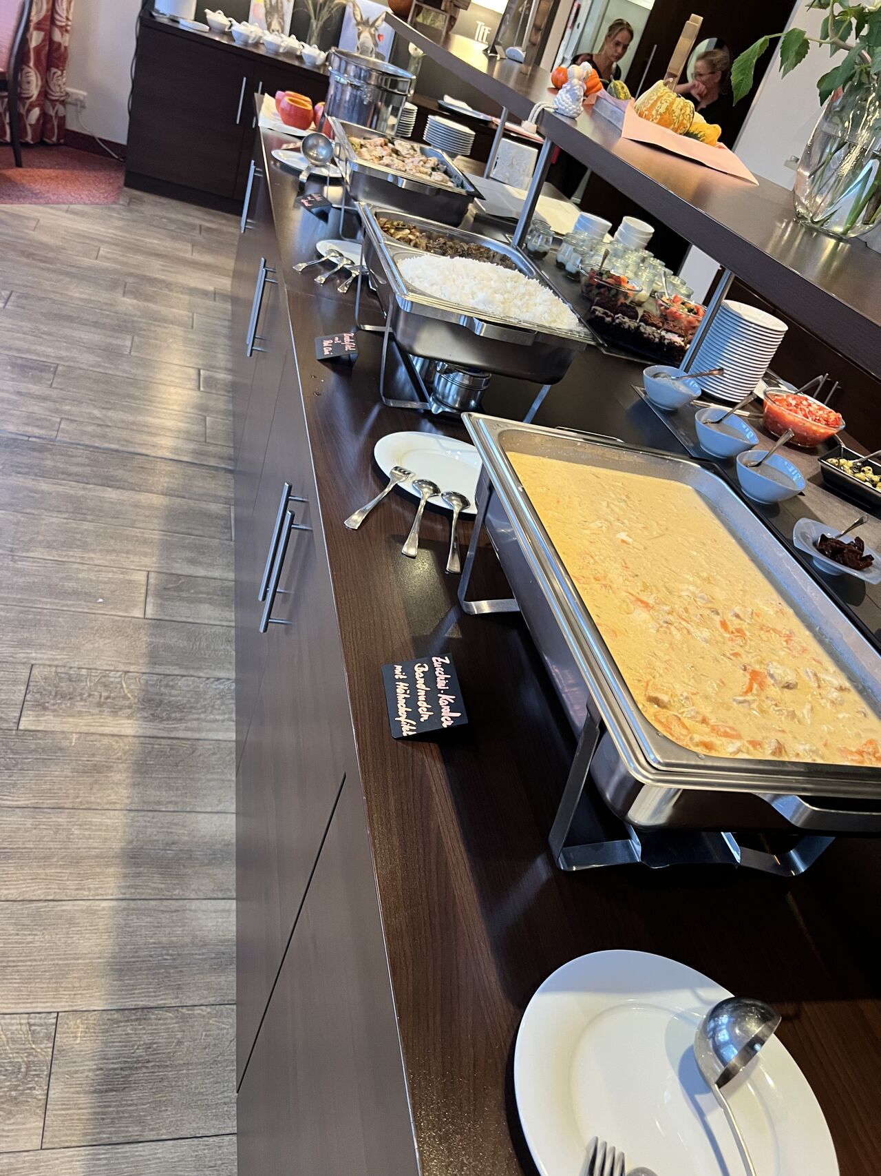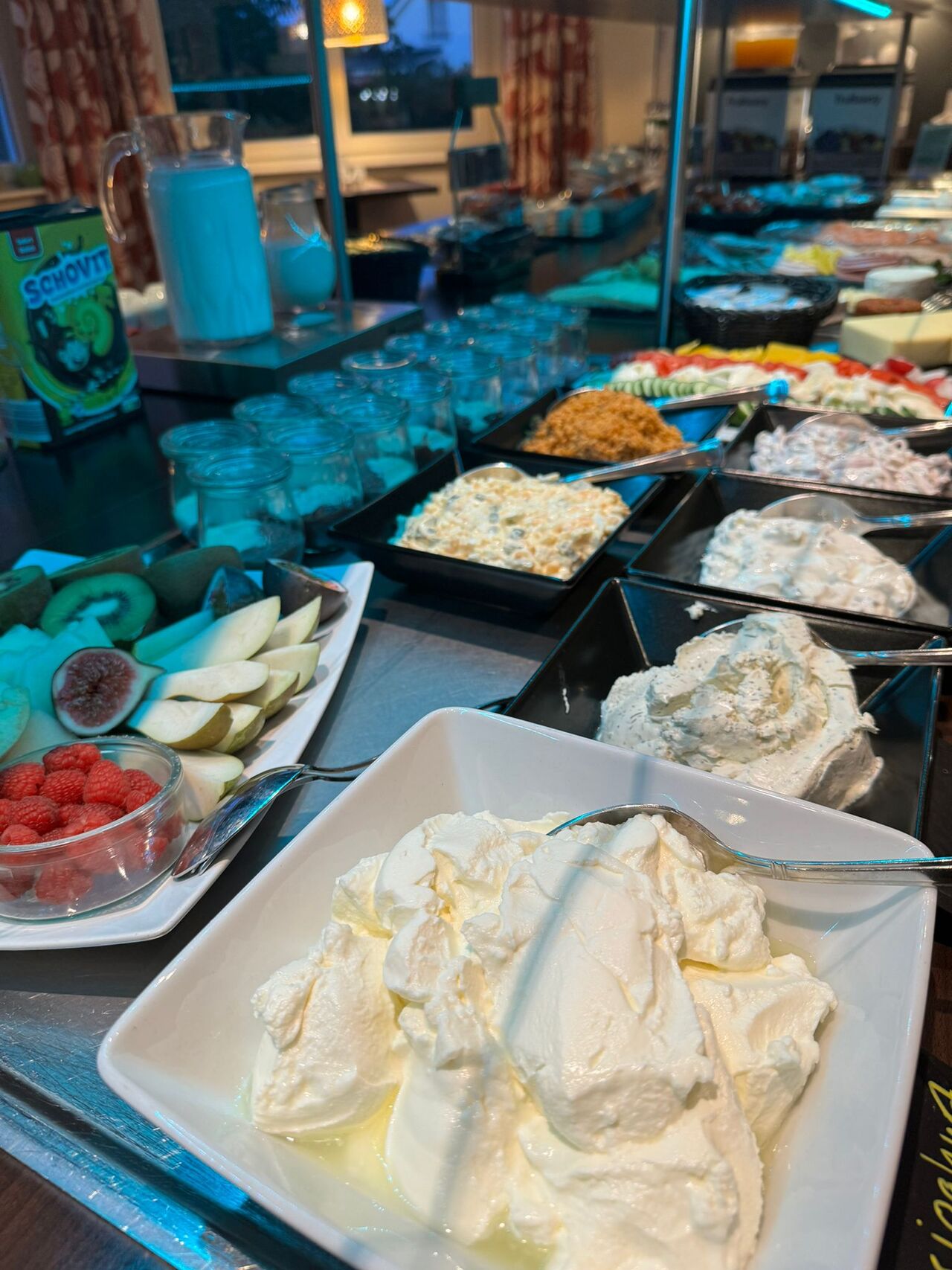 Beginnen Sie den Morgen mit einem Frühstück, das nicht nur satt, sondern glücklich macht. Frisch gebackene Brötchen, regionale Köstlichkeiten, hausgemachtes Rührei, Obst, Müsli und feine warme Speisen erwarten Sie. Unser freundliches Team sorgt dafür, dass Sie den Tag entspannt und genussvoll beginnen.
